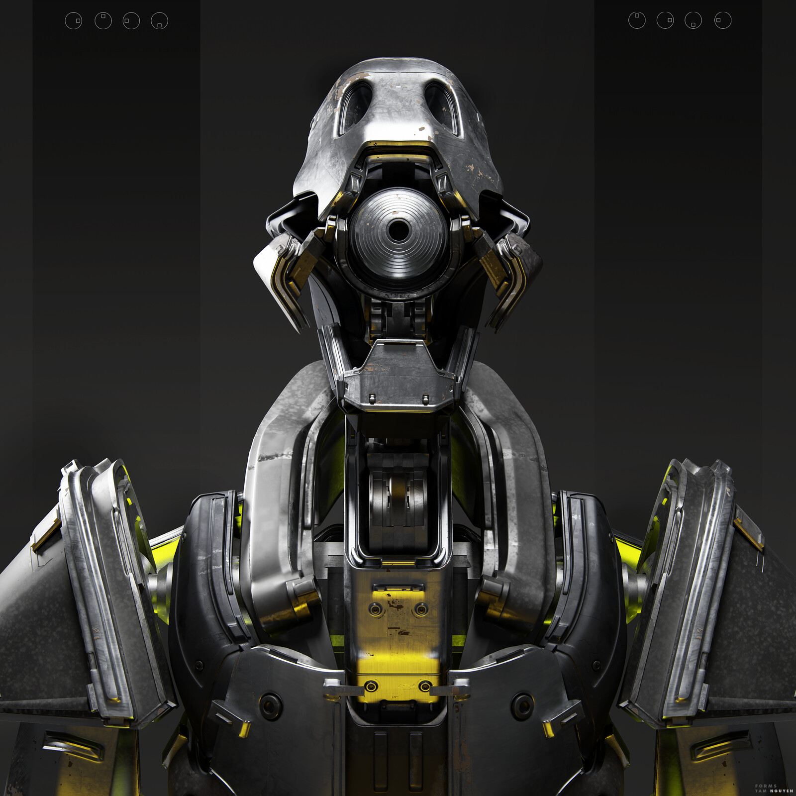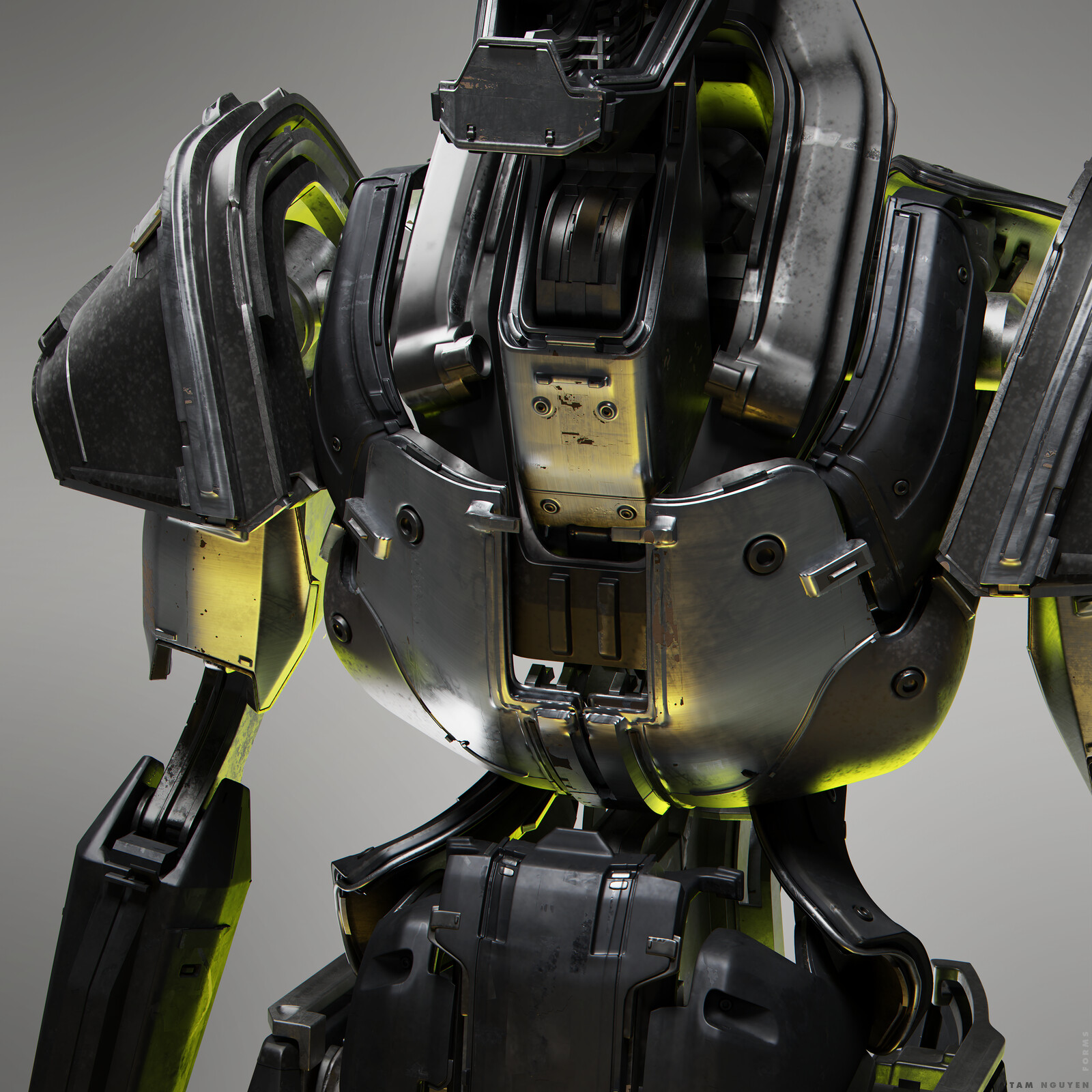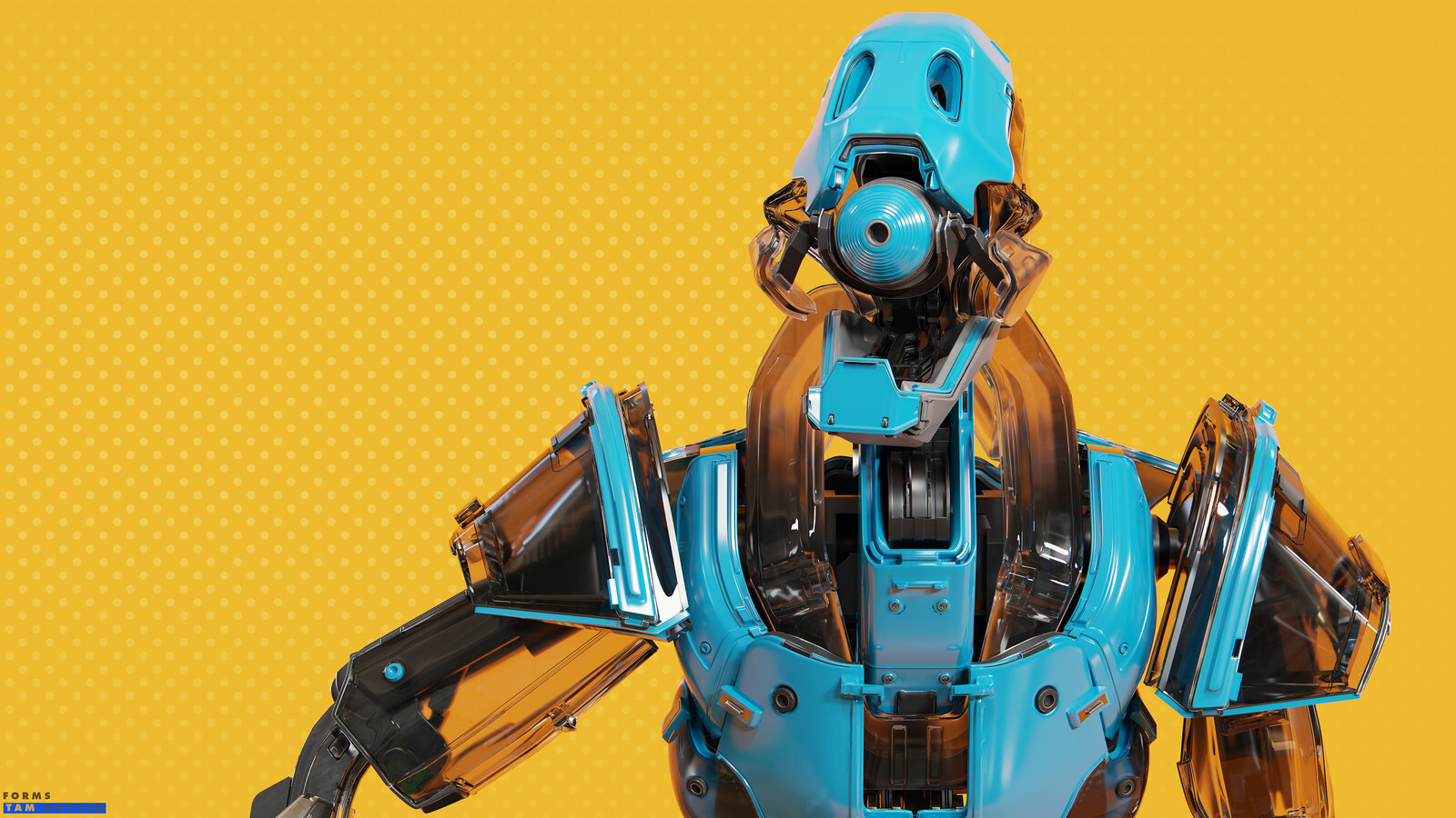 This robot was designed for a long-term project name FORMS. Most of the work is done in Blender (modelling, texturing, rendering with Cycles), except the metal option's texture was made in Substance Painter.